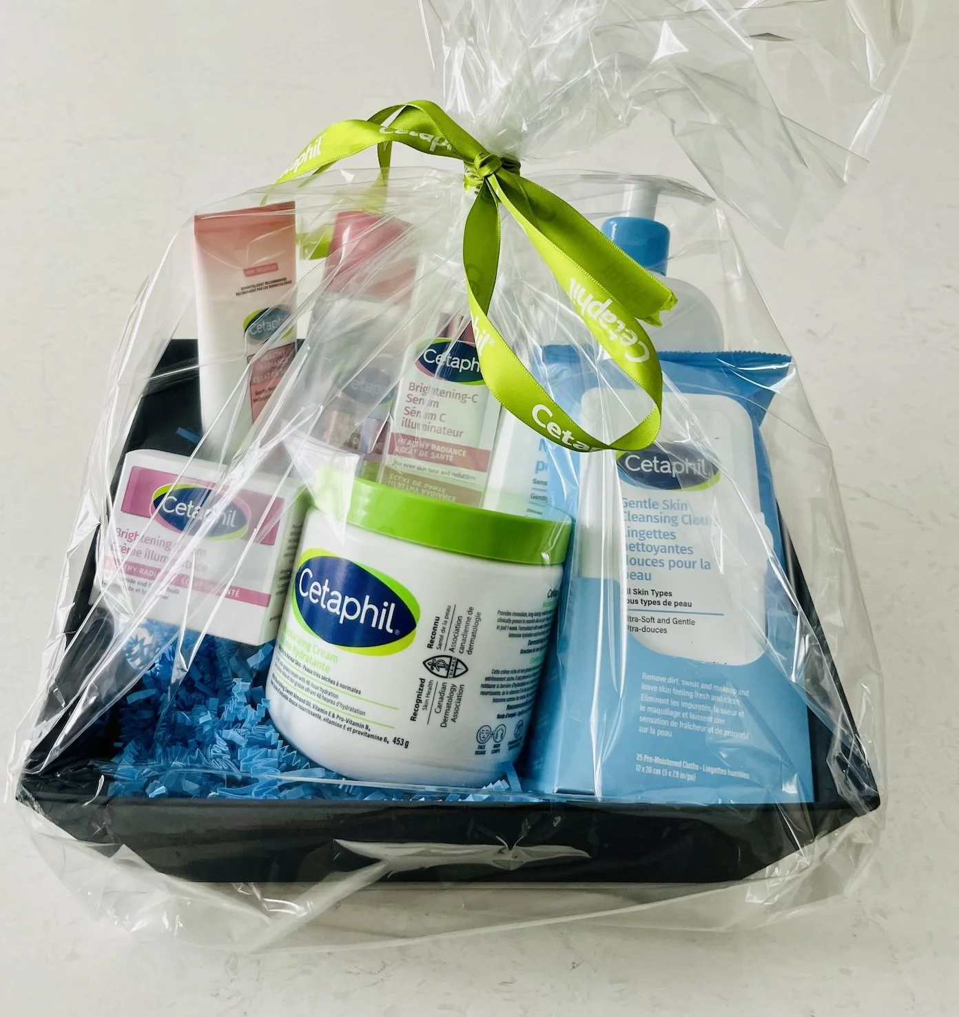 A gift basket containing an elegant assortment of Cetaphil Beauty Products.